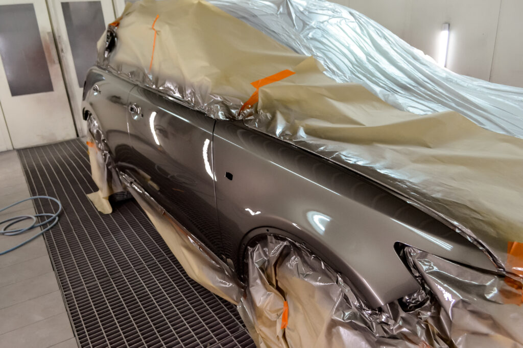 Fordonslackerare jobbar i ljusa, moderna och miljövänliga lokaler. Lackeraren använder oftast vattenspädbara färger och bär friskluftsmask i sprutboxen.